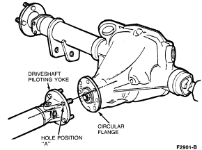 NOTE: Original equipment driveshaft-to-axle companion flange retaining bolts (N-800594-S100) are Loctite coated and do not require a lockwasher. If these bolts are removed, they may be re-installed, if additional Loctite is applied. New and used bolts must be tightened to 95-129 Nm (70-95 lb-ft).