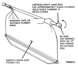 - While holding the vinyl and roller tube, depress the RH end cap (marked