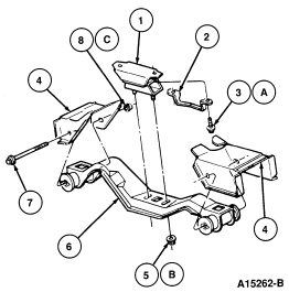 - Install the crossmember to the body brackets. Tighten the retaining nuts