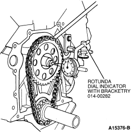 Bracketry 014-00282 or equivalent so indicator point is on camshaft sprocket