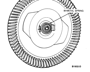 The fan clutch permits use of a powerful fan with minimal power loss and noise. It is a temperature-controlled fluid coupling that regulates fan speed according to the temperature of the air coming through the radiator core and flowing around the bimetal control valve located on the forward face of the clutch.