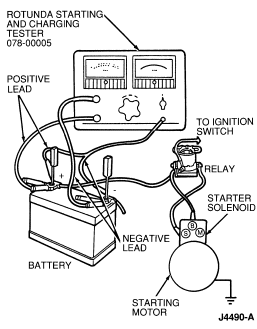 - Connect Rotunda Starting and Charging Tester 078-00005 or equivalent. Make