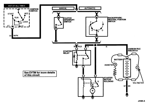 VICINITY OF THE STARTER, BE AWARE THAT THE HEAVY GAUGE BATTERY INPUT LEAD AT
