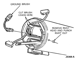 Remove ground brush rivet head with file or chisel and remove rivet with