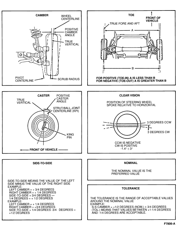 After front-wheel alignment factors have been checked, make the necessary adjustments. Do not attempt to adjust front-wheel alignment by bending the suspension or steering parts.