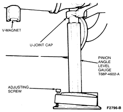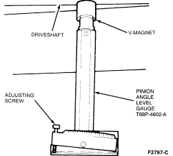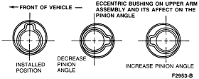 If the pinion angle is not within specification, install service upper control arms (may not be available for all vehicles, check with your dealer) equipped with cams. Adjust pinion angle as follows: