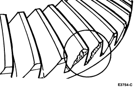 Pinion bearings are frequently replaced on axles with low mileage under 24,139 km (15,000 miles), unnecessarily when correcting gear noise. They should not be replaced unless they are actually scored or damaged, or there is a specific pinion bearing noise. Examine the large end of the rollers for wear. If the bearings original blend radius has worn to a sharp edge, the bearing should be replaced.