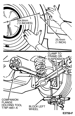 Another possibility is simply that one or more bolts are slightly backed-out. Remove, replace and properly tighten the bolts using Stud and Bearing Mount E0AZ-19554-BA (WSK-M2G349-A1) or equivalent, on the threads.
