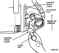 - Attach cable end to parking brake lever. Install cable retaining clip on
