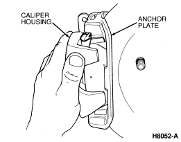 - Position caliper assembly and anchor plate. Ensure that brake shoes and