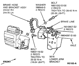 - Using new washers, connect brake flex hose to caliper. Tighten retaining