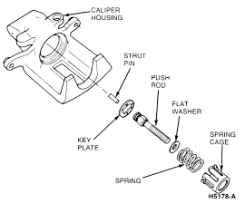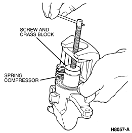 NOTE: Tools used in Steps 6 through 9 are part of Caliper Spring Compressor Set T87P-2588-B.
