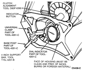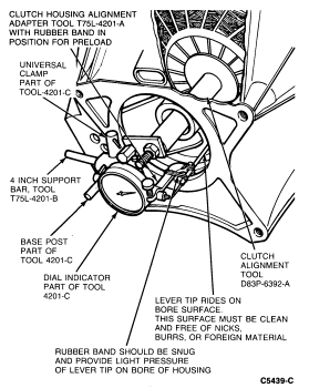 - Install Clutch Alignment Tool D83P-6392-A, or equivalent with dial