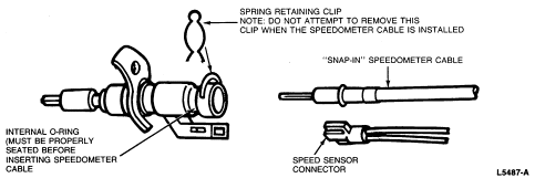 NOTE: Do not attempt to remove spring retainer clip with speedometer cable in VSS.