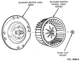 Remove metal pushnut from blower motor and wheel assembly and remove wheel.