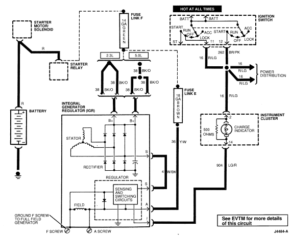 The 'I' circuit, or ignition circuit, is used to turn on the voltage regulator. This circuit is powered up with the ignition key in the RUN position. This circuit is also used to turn the indicator on if there is a fault in the charging system operation or associated wiring circuits.