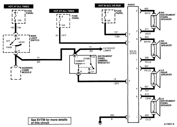 | 811 | Speaker Return RH Front Speaker | 18 | DG/O | X |