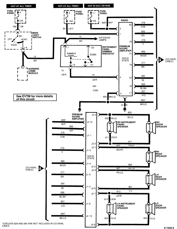 | 806 | Speaker Voice Coil Feed Rear (RH Channel) | 18 | PK/LB | X |