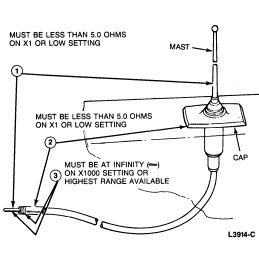 If any ohmmeter reading is unsatisfactory, replace the complete antenna