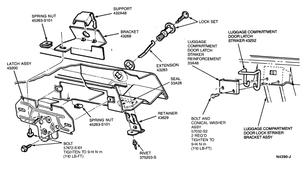 Section 01-14: Handles, Locks, Latches and Mechanisms | 1993 Mustang Workshop Manual |