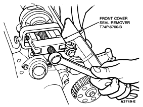Use Front Cover Seal Remover T74P-6700-B to remove all the seals.
