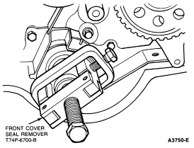 the cover is still on the engine, using Front Cover Seal Remover T74P-6700-B.
