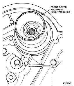 retaining bolts, use Front Cover Alignment Tool T74P-6019-B as shown, to