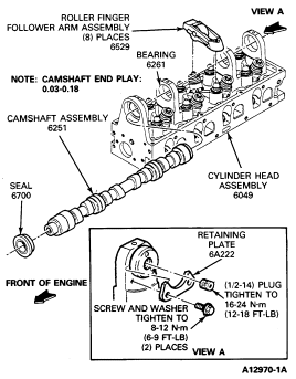 CAUTION: Remove camshaft carefully to avoid damaging journals and lobes.