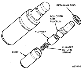 The lash adjuster is assembled with a simple crimped collar which snaps into a groove on the outside body. This collar can be removed and installed as necessary without damaging it.