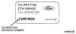 The emission calibration number label is located on the LH side door or LH door post pillar. It identifies the engine calibration number, the engine code number and revision level. These numbers are used to determine if parts are unique to specific engines.