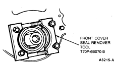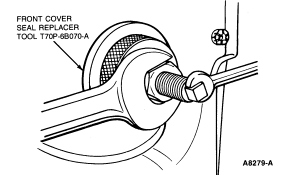 Place the Front Cover Seal Remover T70P-6B070-B onto the front cover plate