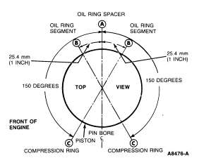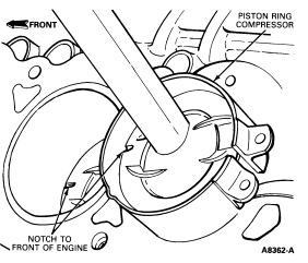 CAUTION: Install the piston with the indentation notch in the piston head