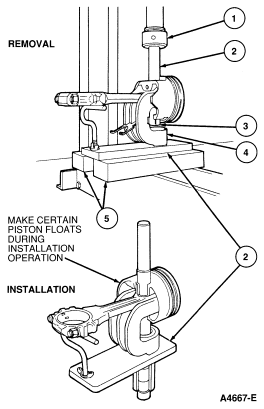 Remover/Replacer T68P-6135-A, press the piston pin from the piston and