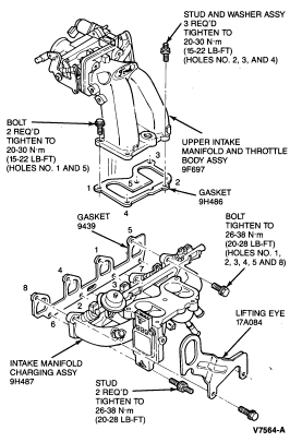 The air intake manifold is a two-piece (upper and lower intake manifold)