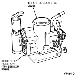 The throttle body assembly controls airflow to the engine through a
