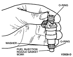 Inspect injector O-rings (two per injector) for signs of deterioration. Replace as required.