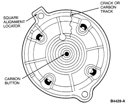 Wash both inside and outside surfaces of the distributor cap with soap and water. Dry cap with compressed air. Inspect cap for cracks, broken carbon button or carbon tracks. Also, inspect cap terminals for dirt and corrosion. Replace the cap if it is damaged.