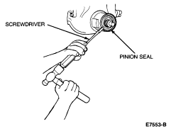 - Position screwdriver under flange of pinion seal and strike with hammer to
