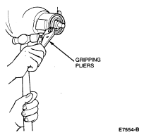 - Pry up on metal flange of pinion seal. Install gripping pliers and strike