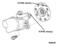 - Make scribe marks on the driveshaft axle end yoke and axle companion flange