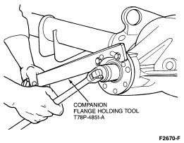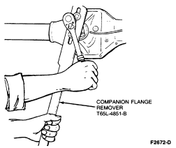 - Remove circular companion flange using Companion Flange Remover T65L-4851-B.