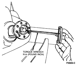 - Install a Nm (lb-in) torque wrench on the pinion nut.