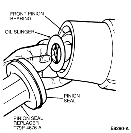 NOTE: Clean the oil seal surface before installing the seal in the housing bore. Coat lips of seal with Premium Long-Life Grease XG-1-C (ESA-M1C75-B) or equivalent.