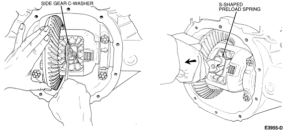 - Place the pinion gears and thrust washers 180 degrees apart on the side