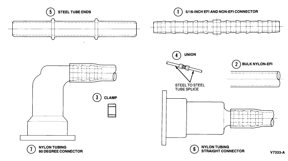 CAUTION: Nylon fuel tube must not be serviced using hose and hose clamps.