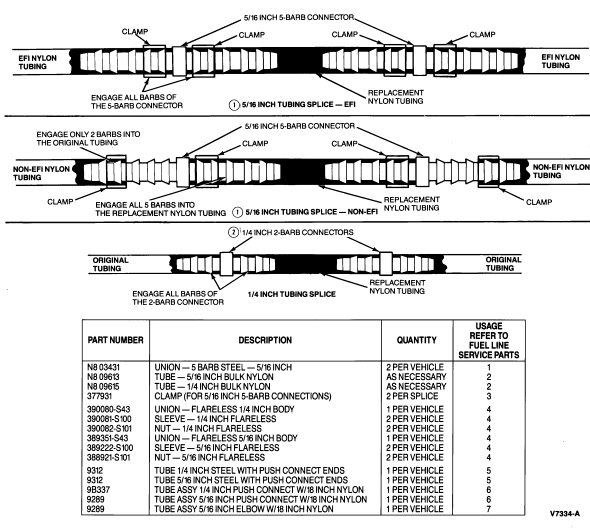 for splicing 5/16 inch non-EFI and 5/16 inch EFI tubing. Refer to illustration