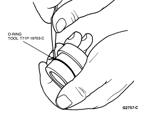 NOTE: On the first attempt, the nylon ring may pull out of the seal, leaving the seal in the gear. Repeat the procedure, and the seal will come out.