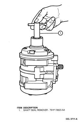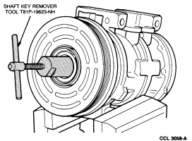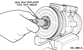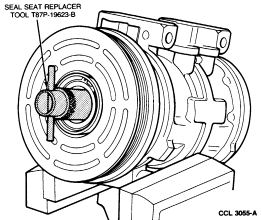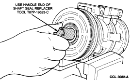 - Insert Shaft Seal Remover T91P-19623-AH into compressor nose opening on top