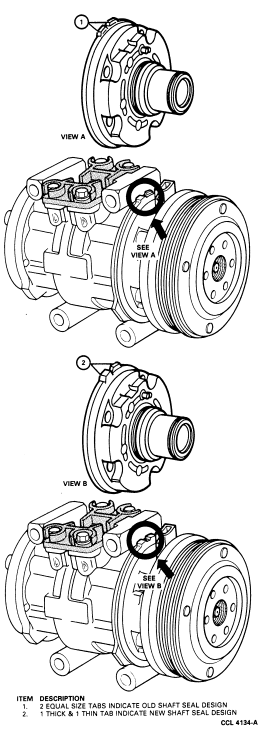 The 10P15C compressor uses two different shaft seals. The shaft seal