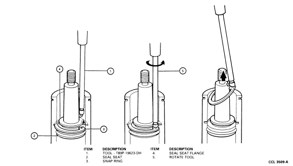 Removing Seal Seat Snap Ring Using T89P-19623-DH